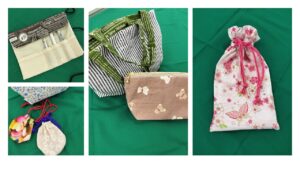 巾着やトートバック、ペンケースや化粧ポーチなどに大切なものを入れて持ち歩いているそうです。次は何を作ろうか考えると心がウキウキしますね。皆様、初めて作ったものより明らかに上達した作品に仕上がっています。あまり体験したことが無い方でも参加してオリジナル作品を作ってみませんか?