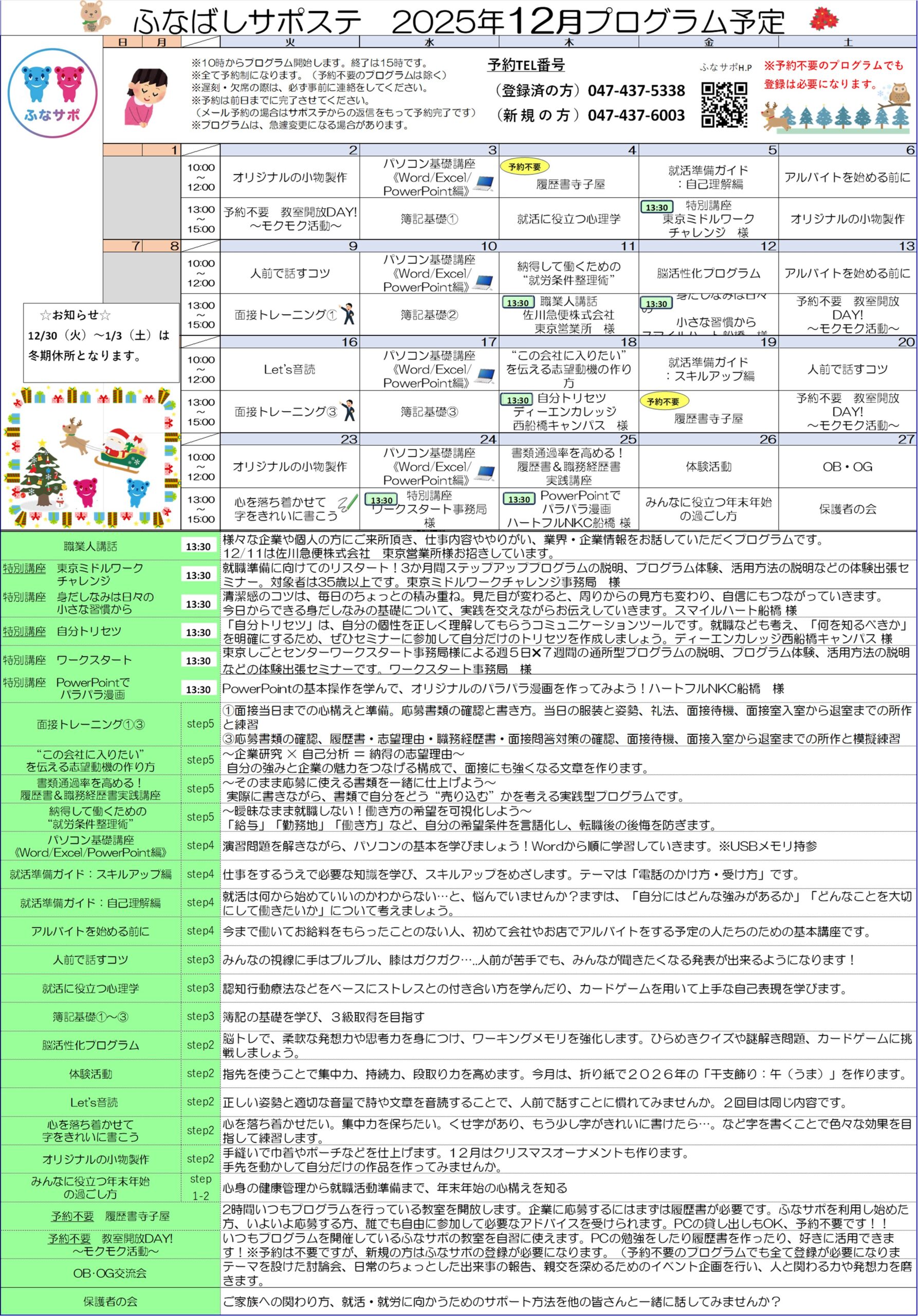 12月のプログラムが決まりました🎄