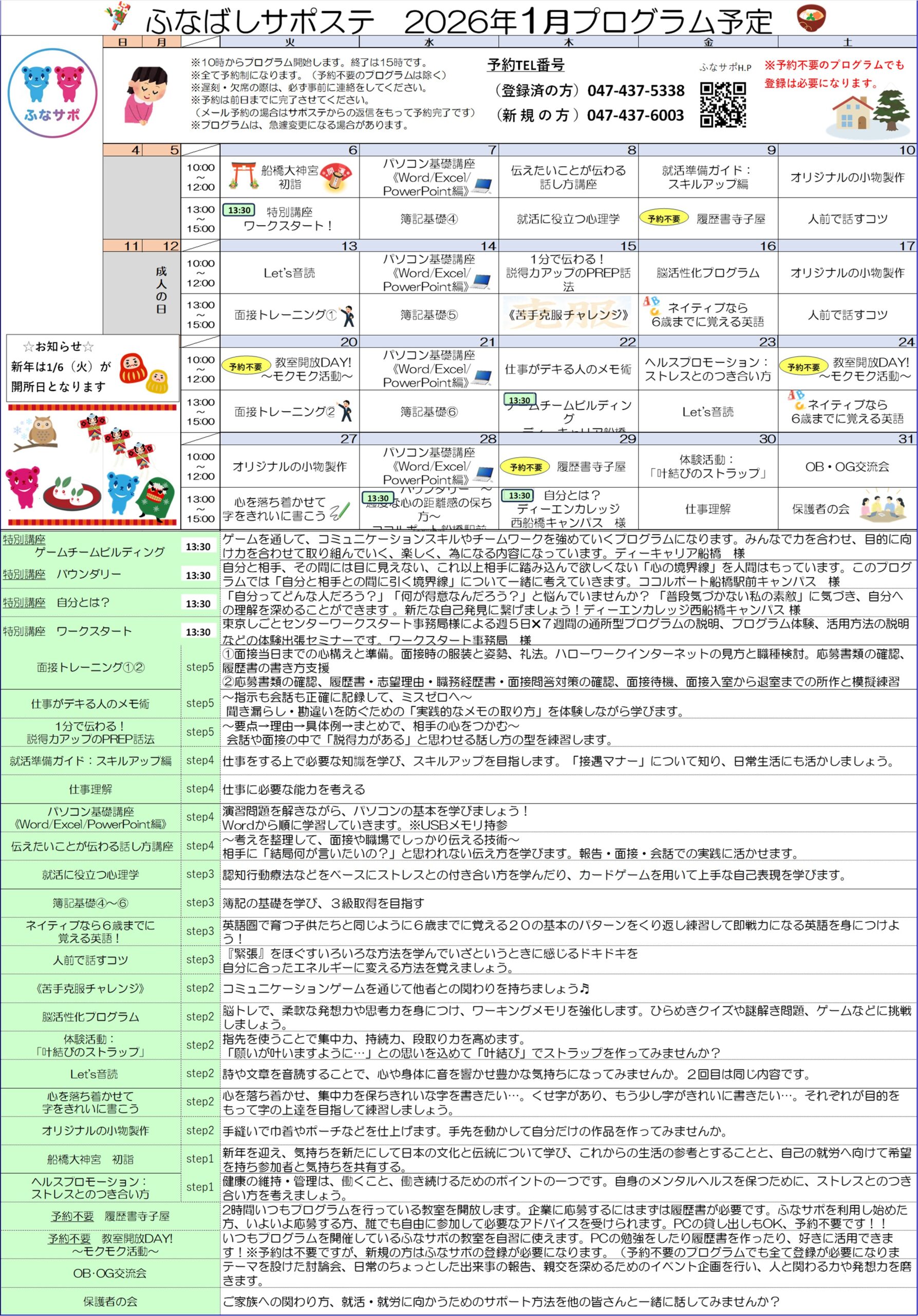新年1月のプログラムが決まりました!