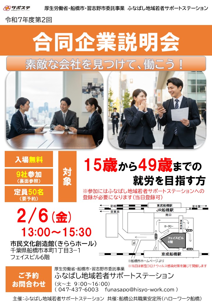 【お知らせ】第2回ふなサポ合同企業説明会が2/6(金)開催されます!
