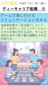 ディーキャリア船橋様 イベント・プログラム新着記事 12/12(金)特別講座開催のお知らせ 12/11(木)職業人講話開催のお知らせ 12/5(金)特別講座のお知らせ 11/27(木)特別講座開催のお知らせ ブログ新着記事 【PGM】オリジナルの小物製作の作品紹介&プログラム参加のお誘い 若松団地夏祭りにふなサポ出店!! 9/5和菓子作り体験会が開催されました ふなサポが紹介されました! Posts by funa_sapo