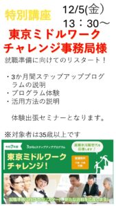 東京ミドルワークチャレンジ様 イベント・プログラム新着記事 12/12(金)特別講座開催のお知らせ 12/11(木)職業人講話開催のお知らせ 12/5(金)特別講座のお知らせ 11/27(木)特別講座開催のお知らせ ブログ新着記事 【PGM】オリジナルの小物製作の作品紹介&プログラム参加のお誘い 若松団地夏祭りにふなサポ出店!! 9/5和菓子作り体験会が開催されました ふなサポが紹介されました! Posts by funa_sapo