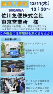 職業人講話佐川急便(株)様 イベント・プログラム新着記事 12/12(金)特別講座開催のお知らせ 12/11(木)職業人講話開催のお知らせ 12/5(金)特別講座のお知らせ 11/27(木)特別講座開催のお知らせ ブログ新着記事 【PGM】オリジナルの小物製作の作品紹介&プログラム参加のお誘い 若松団地夏祭りにふなサポ出店!! 9/5和菓子作り体験会が開催されました ふなサポが紹介されました! Posts by funa_sapo