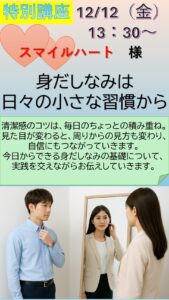 特別講座スマイルハート様 イベント・プログラム新着記事 12/12(金)特別講座開催のお知らせ 12/11(木)職業人講話開催のお知らせ 12/5(金)特別講座のお知らせ 11/27(木)特別講座開催のお知らせ ブログ新着記事 【PGM】オリジナルの小物製作の作品紹介&プログラム参加のお誘い 若松団地夏祭りにふなサポ出店!! 9/5和菓子作り体験会が開催されました ふなサポが紹介されました! Posts by funa_sapo