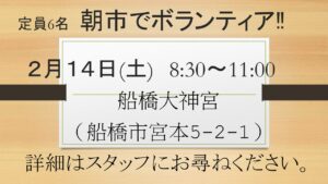 【お知らせ】2月14日船橋大神宮朝市ボランティア参加者募集